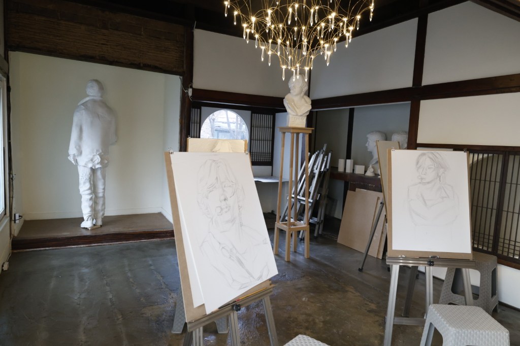 류민수는 이번 전시에서 (아마도?)제도권에서 필요하지 않다고 여겨지는 과거의 빛바랜 생산 시스템을 소환한다. 전시장 1층의 방에서는 작가가 상주하며 석고상을 만드는 전 과정을 관람할 수 있다. 이 장면은 노동 그 자체를 전시장으로 끌어들인 퍼포먼스이기도 하다. 석고상은 과거의 표준적인 인간상이라는 개념을 상기시키는데 작가는 ‘사이버 가수 아담’을 석고상으로 복원한다. 그리고 2층에서는 데생이 진행되었던 공간이 펼쳐져 있었는데 이는 지금은 사라진 입시 미술 형식 중 하나인 석고상 데생을 연습하던 장면을 재현한 듯하다.